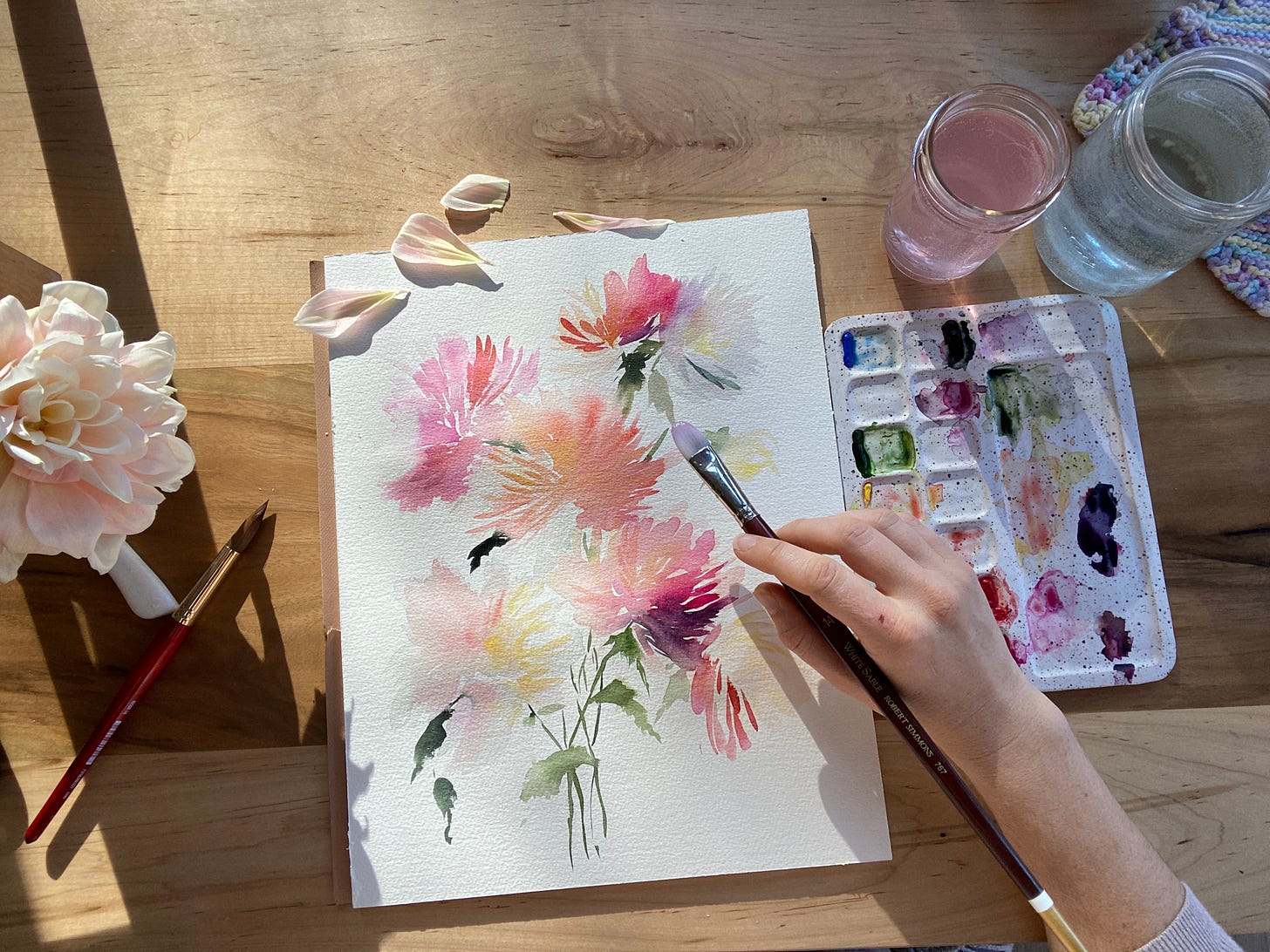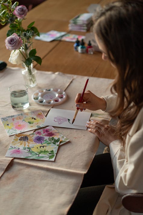 It brought me back to when I started painting loose watercolor florals and the feeling of needing the final outcome to look a specific way... to “fit” in the cannon of loose watercolor florals I saw on Instagram. Almost like wrestling my hand to do exactly what my eyes and brain were messaging.